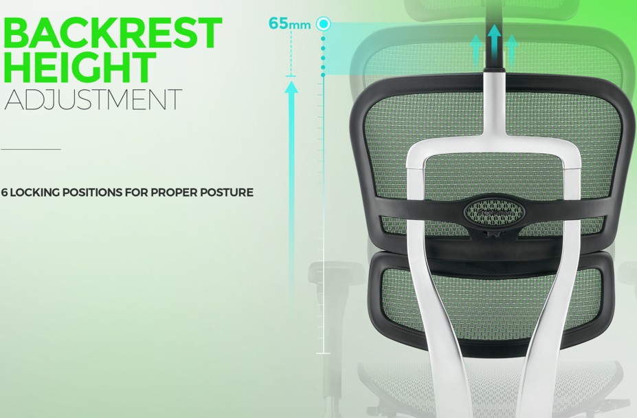 - контроль осанки и правильная эргономичная посадка с регулируемым по глубине сетчатым сиденьем