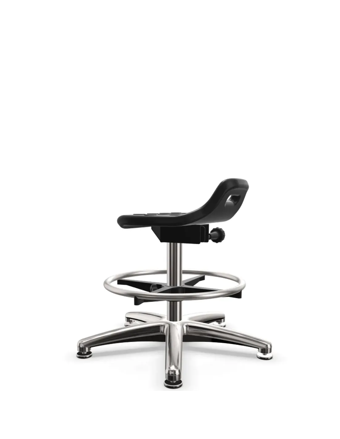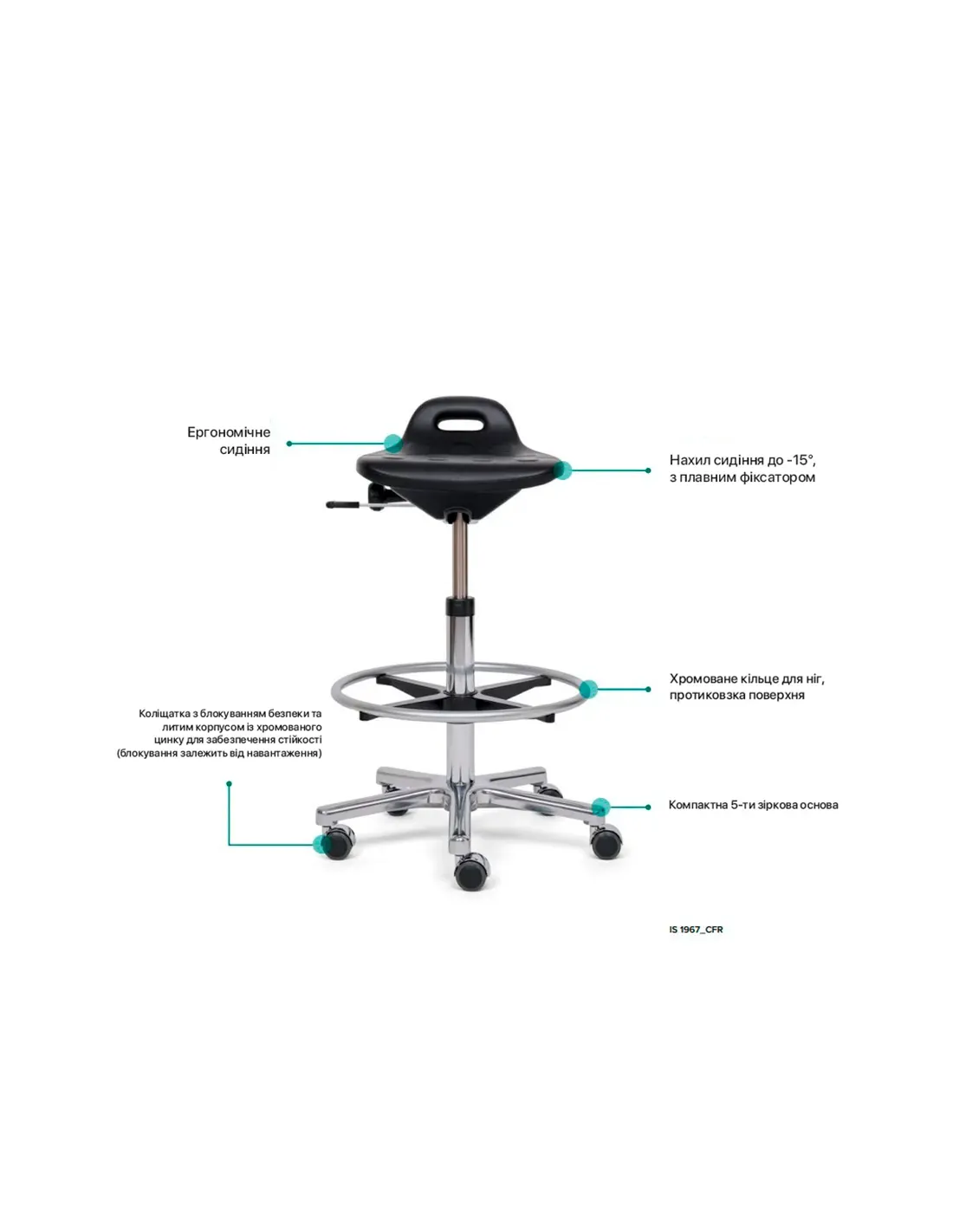 Страна: Германия. Класс: промышленное кресло, эргономичное. Кресло разработанно для работ, требующих длительного пребывания в положении стоя или полусидя. Кресло Dauphin Tec basic IS 1967 с подставкой для ног - отличный выбор для широкого спектра применений, идеально подходит для использования на конвейерах, лабораториях, мастерских или косметологических салонах. Оно способствует правильной осанке и обеспечивает максимальную свободу движений рук и плеч.Сидение изготовлено из мягкого пенополиуретана (PU) черного цвета, который устойчив к износу, маслам, искрам и грязи. Основа: полированный алюминий. Кресло оснащено хромированной опорой для ног в виде кольца и пятилучевой базой на роликах, автоматически блокируемых под нагрузкой для безопасности. Регулировка: имеет функцию регулировки высоты и наклона сиденья для поддержания правильной осанки. Максимальная нагрузка:120 кг. Гарантия: 5 лет.
