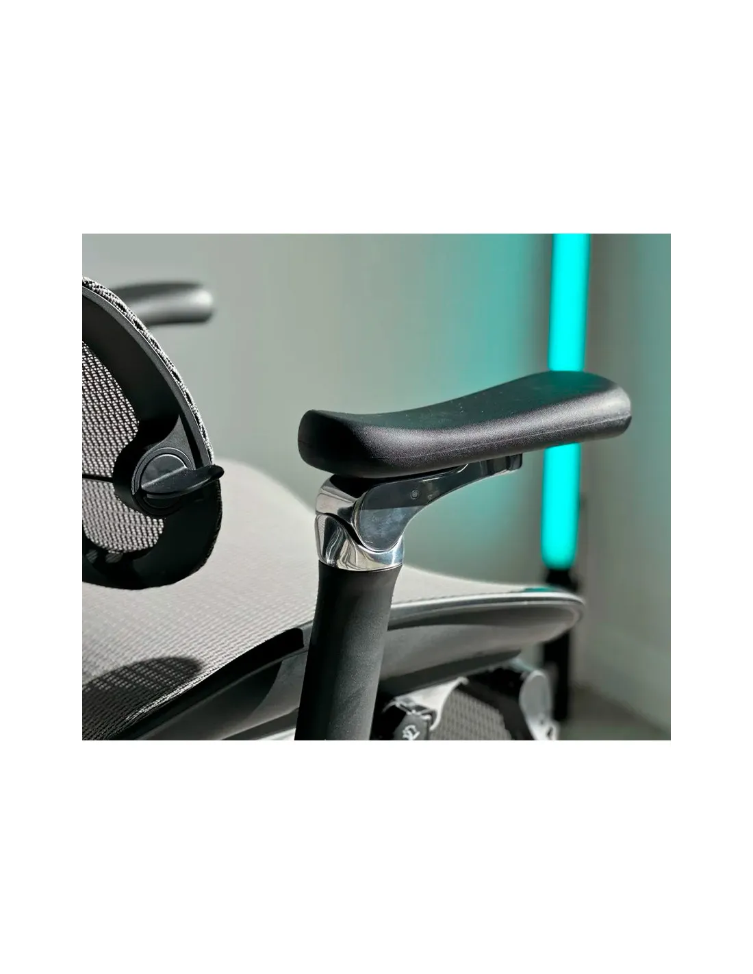 • Регульовані підлокітники які забезпечують додатковий комфорту і допомагають знизити навантаження на руки та плечі. Флагманська комплектація облаштована 6D підлокітниками, це означає, що ви можете їх регулювати не тільки в 4-х напрямках, а також можете збільшити або зменшити відстань між ними і змінити глибину нахилу.