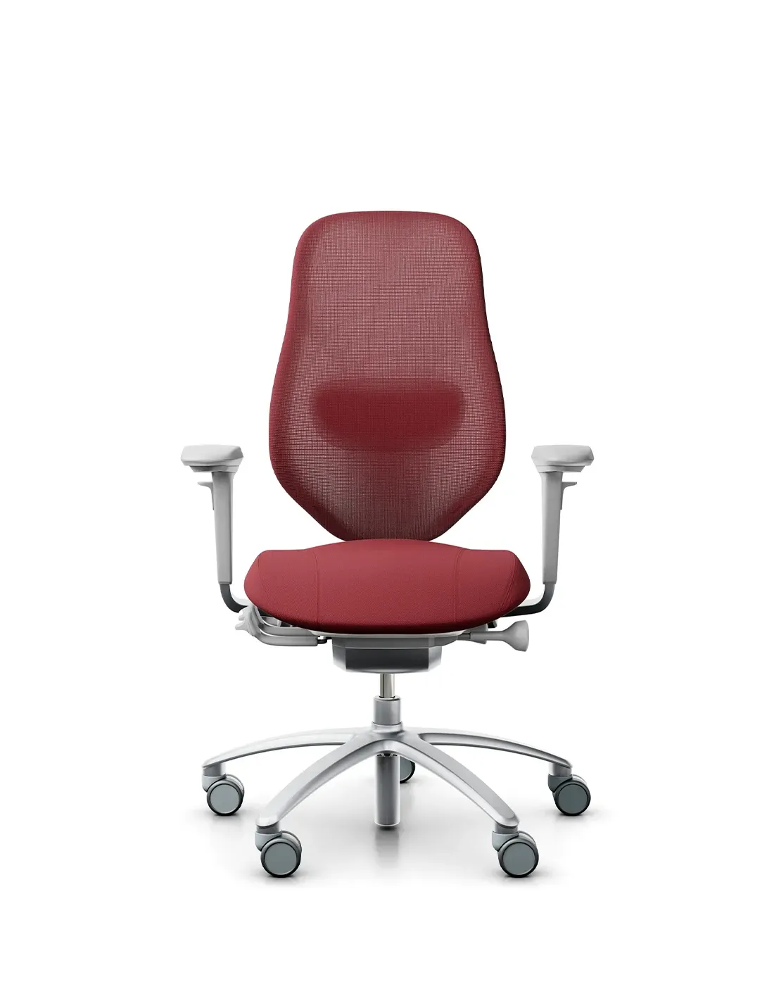 Страна: Швеция. RH Mereo Mesh адаптируется к вашему телу, поддерживая высокий уровень энергии и концентрацию внимания с утра до вечера. Благодаря интуитивно понятным эргономичным настройкам кресло обеспечивает индивудуальный комфорт, cпособствует естественным движениям и правильной осанке. Дышащая сетчастая спинка создает гибкую поддержку и доступна в 15 ярких цветах, каждый из которых обладает своим неповторимым характером и уникальностью. Яркие или нейтральные, выразительные или спокойные - найдется оттенок для любого стиля работы и под любой интерьер. Основание: алюминий, матовый, серый. Обивка: спинка - сетка Tale (Gabriel) Standard, TAL64209 Rasberry red (100 тыс. циклов), сиденье - ткань Tonal (Gabriel), TOL64209 Burgundy (100 тыс. циклов). Механизм: асинхронный, frictionless tilt. Регулировки: высота посадки, фиксация наклона в любом положении, жесткость качания, глубина сиденья, задаваемый угол соотношения спинки к сиденью, высота спинки, высота поясничной поддержки. Подлокотники: регулируемые. Нагрузка: 120 кг. Гарантия: 5 лет.