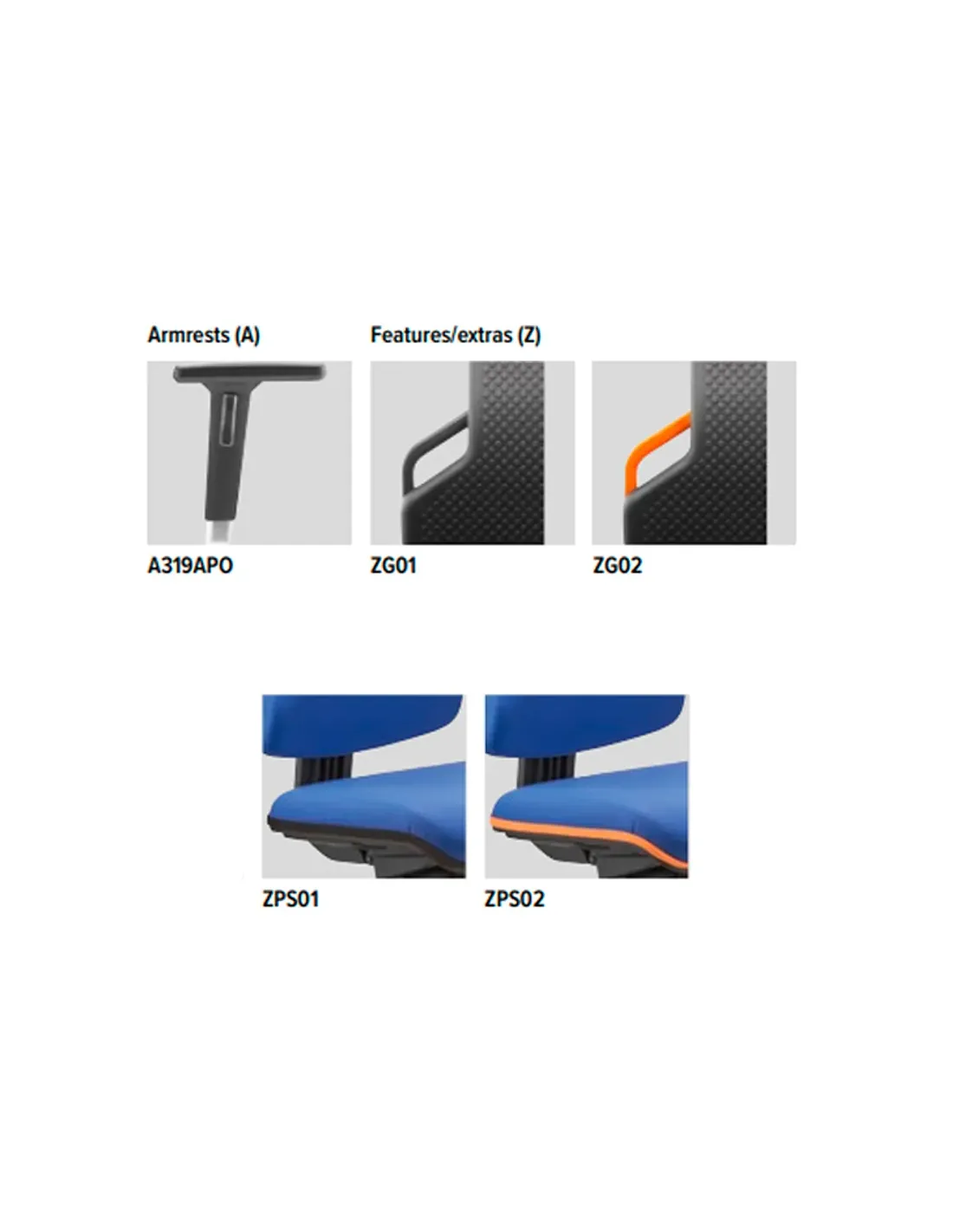 Крісла відповідають вимогам розсіювання статичного заряду, викладеним у DIN EN 61340-5-1:2001; протестовано LGA Nuremberg. Опір Rg ≤ 1x106 Ω.