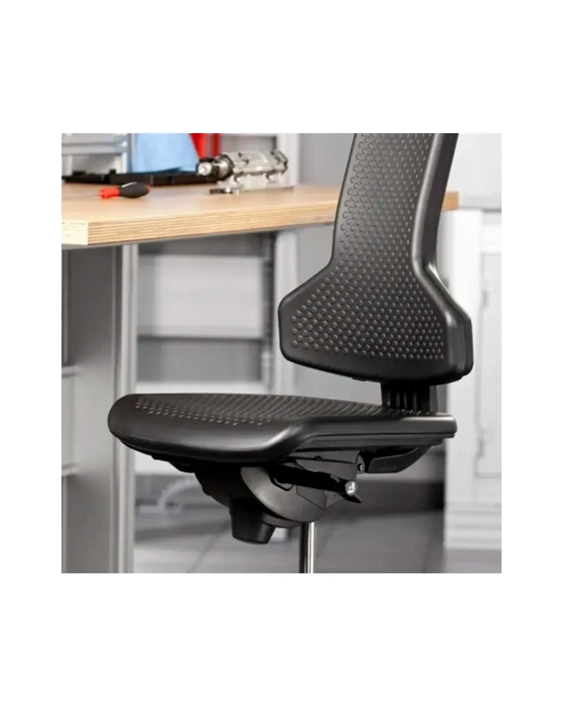 Країна Німеччина. Клас: промислове крісло, крісло для ESD зони, ергономічне. У кріслі TEC PROFILE ESD виробник Dauphin пропонує ефективне поєднання дизайну, функціональності та безпеки на робочому місці. ESD крісла - електростатичні крісла із захистом від електростатичного розряду для використання в електрощитових та зонах підвищеної чутливості. Оббивка, що ламінується металевими волокнами, забезпечує розсіювання електростатичних зарядів, створюючи безпечне середовище для обладнання та працівника. Основа: полірований алюміній. Механізм: синхронний. Регулювання: висота крісла, висота спинки, фіксація нахилу, глибина сидіння. Підлокітники - додаткова опція. Спинка, що звужується, забезпечує більшу свободу рухів та ефективну підтримку верхньої частини тіла. Оббивка: поліуретан, чорний колір. Максимальне навантаження: 120 кг. Гарантія: 5 років.