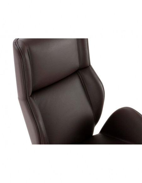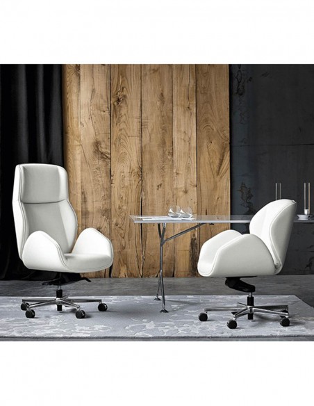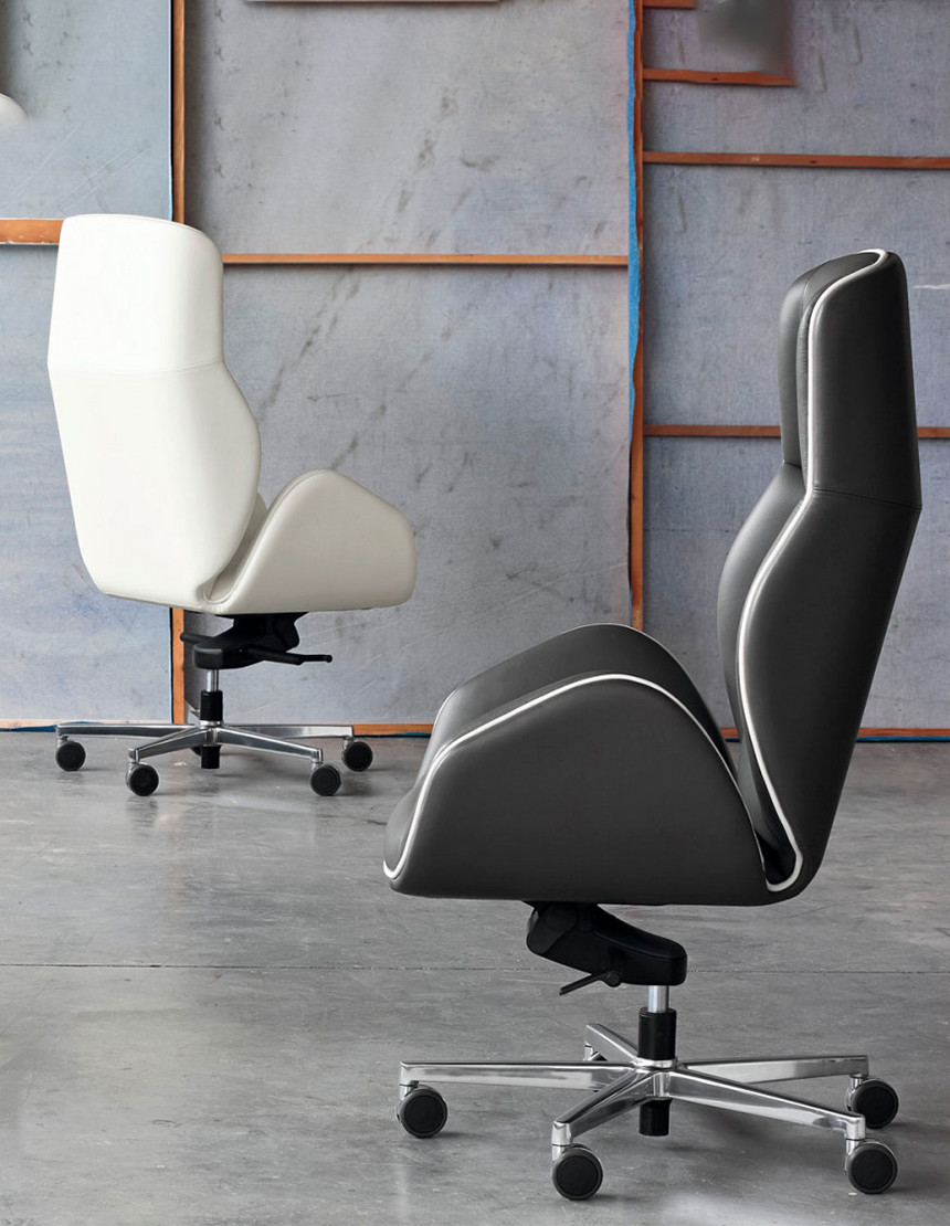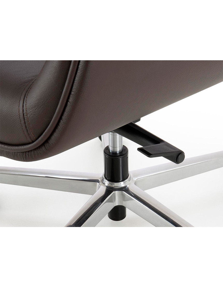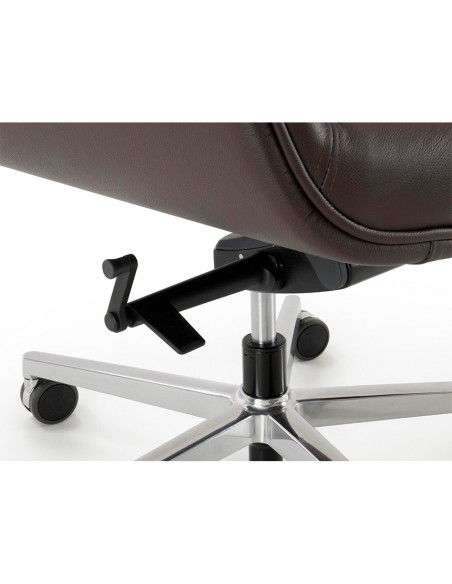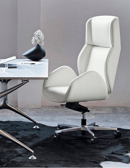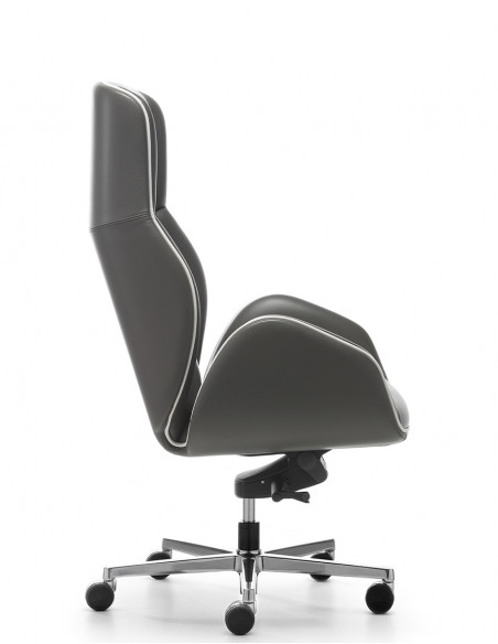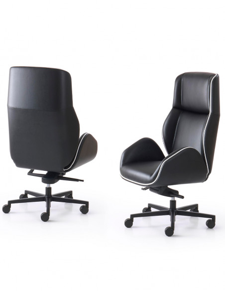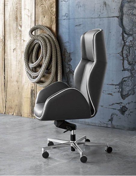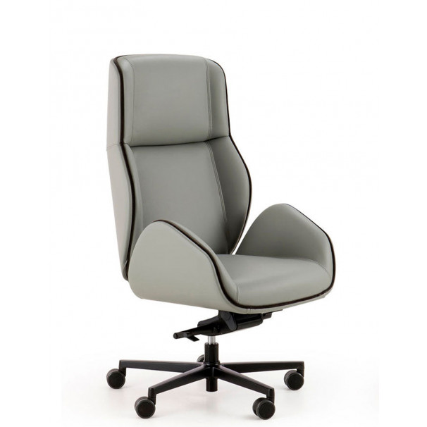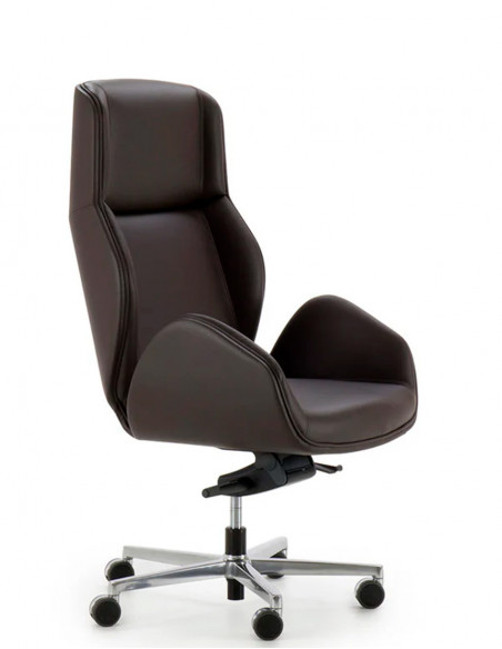 Країна: Італія. Сучасне директорське крісло із скульптурною спинкою. Основа: алюміній. Оббивка: шкіра. Механізм: синхронний. Регулювання: висота крісла, фіксація нахилу, жорсткість гойдання. Декоративна вставка в профіль крісла - додаткова опція. Навантаження: 120 кг. Гарантія: 5 років.