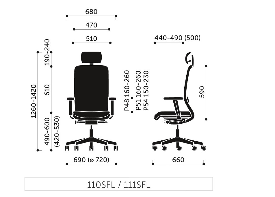 Розмір офісного крісла для роботи з комп'ютером PROFIM VERIS NET 111 SFL
