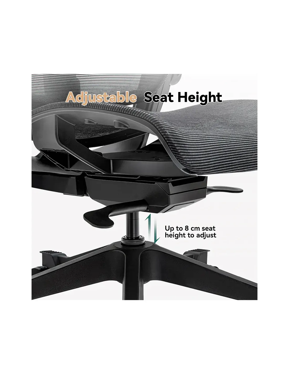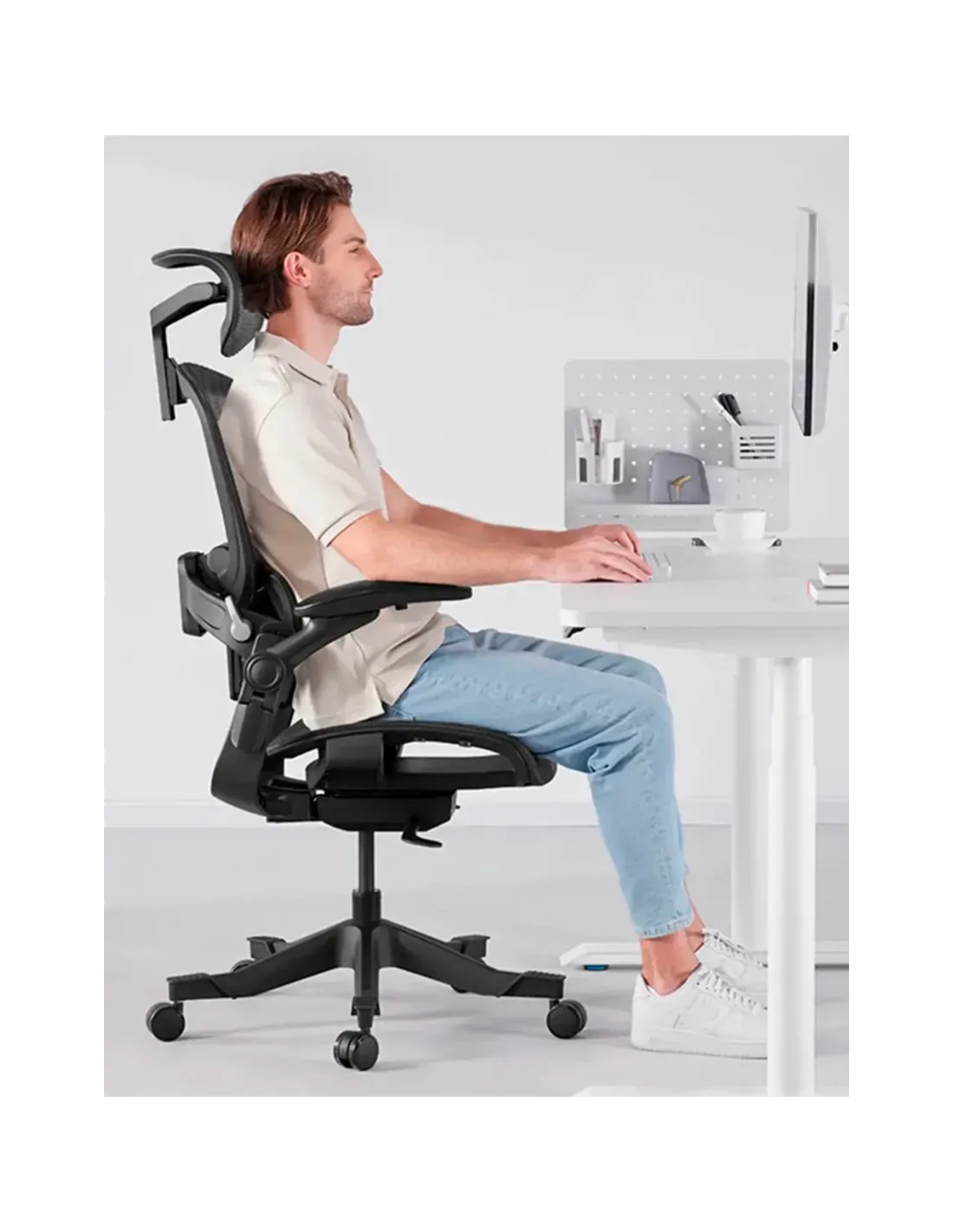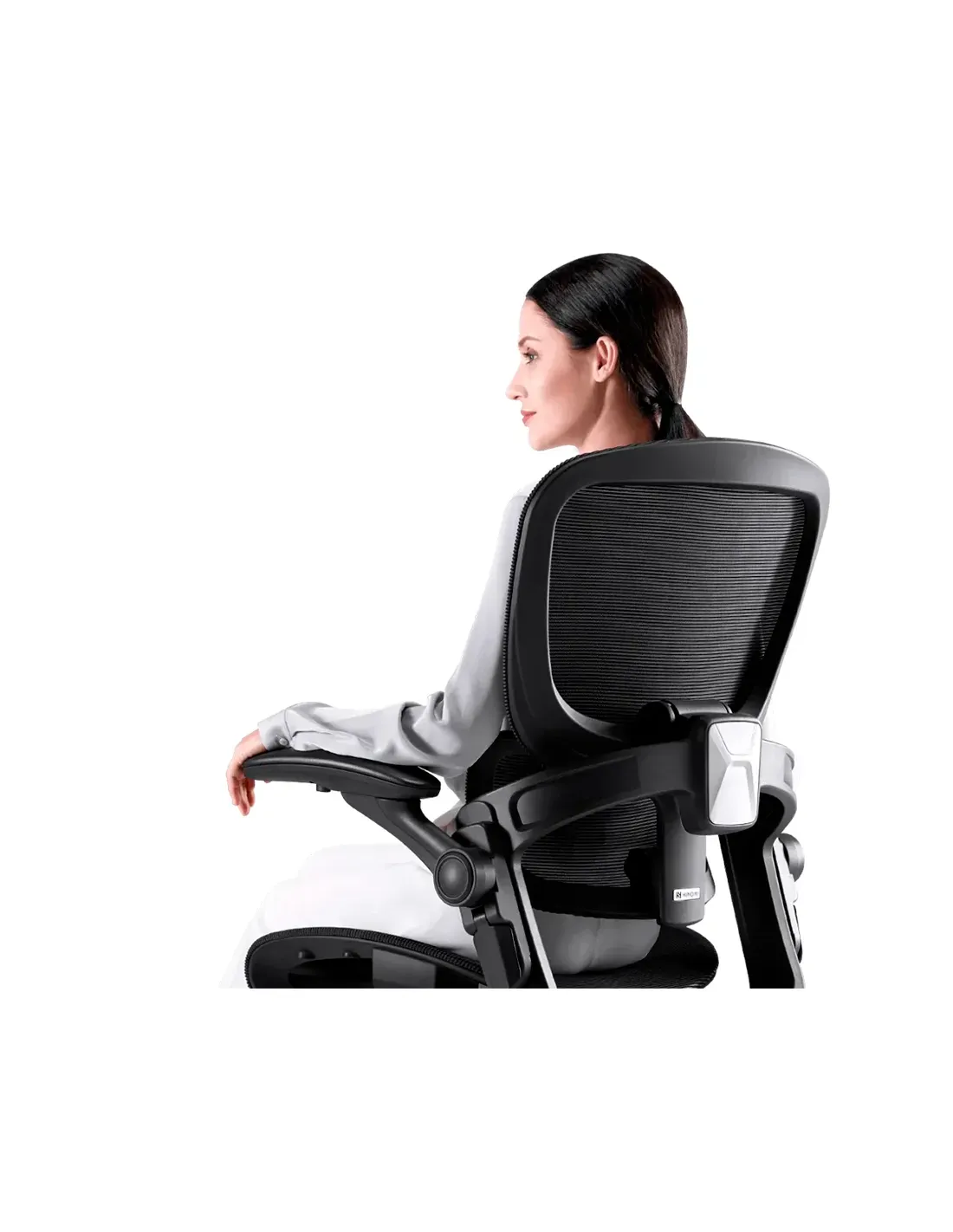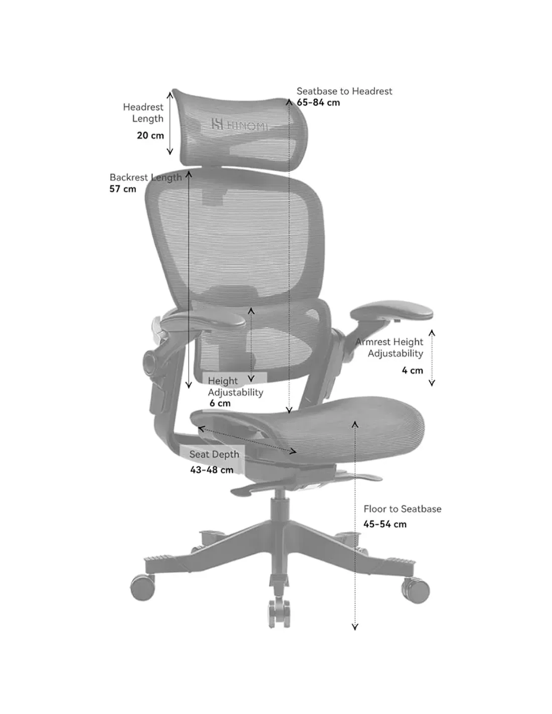 Країна: Сінгапур. Клас: ергономічне. Офісне крісло HINOMI H1 Classic забезпечує максимальний комфорт протягом всього робочого дня. Підтримка попереку синхронізується з рухами вашого тіла, створюючи безперервну підтримку як при нахилі вперед, так і при сидінні прямо або в лежачому положенні. Основа: нейлон. Оббивка: сітка (100 тис. циклів), чорний колір. Механізм: синхронний. Регулювання: висота крісла, глибина сидіння (слайдер-механізм), висота спинки, фіксація нахилу, висота поперекової підтримки. Підлокітники: 4D. Підголівник: 3D. Навантаження: 120 кг. Гарантія: 3 роки.