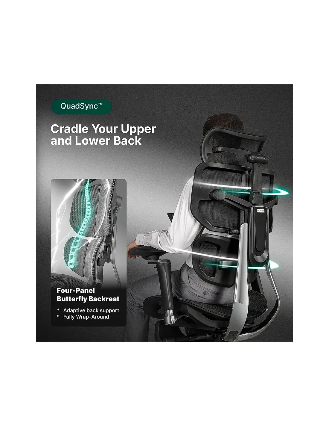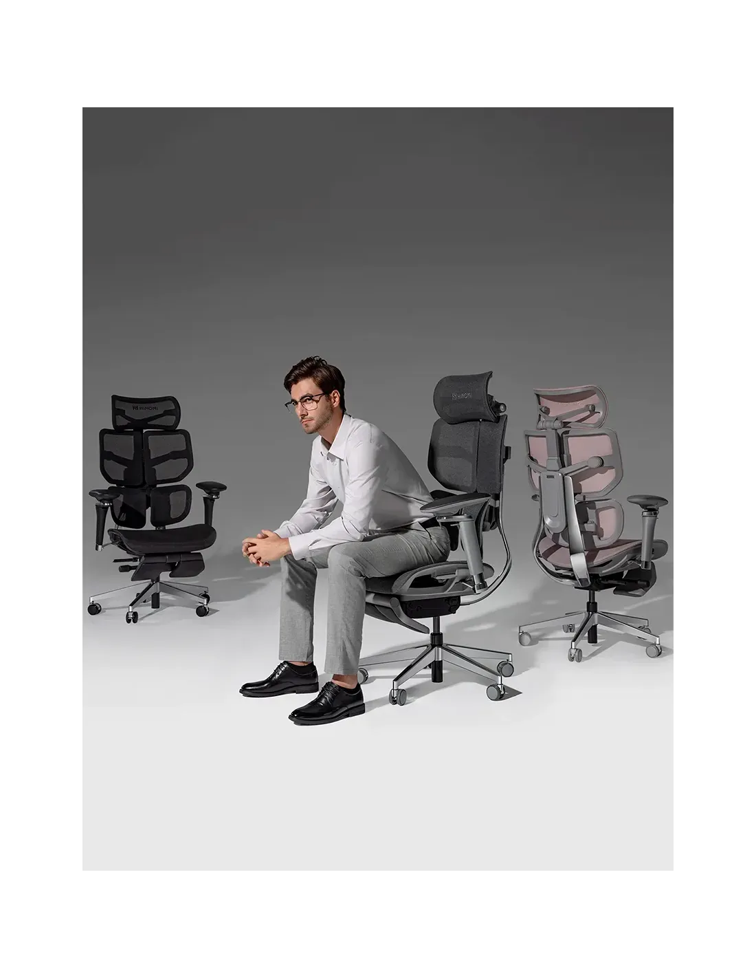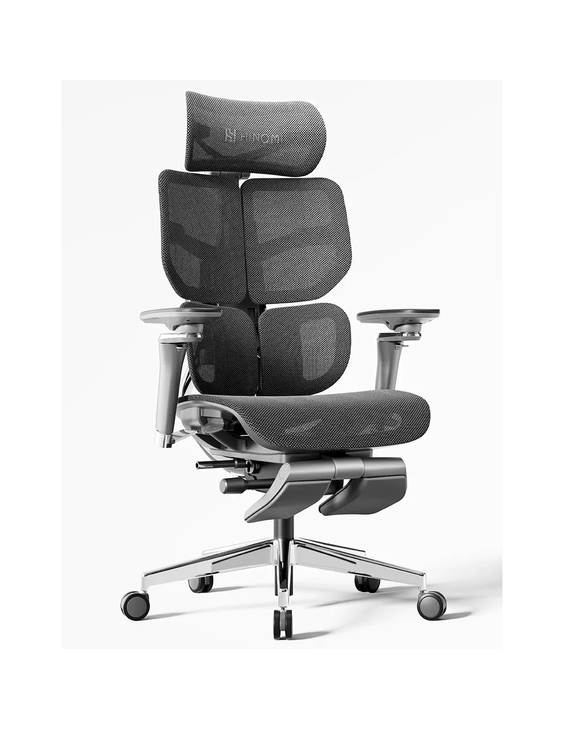 Країна: Сінгапур. Клас: ергономічне. HINOMI X2 Pro - це преміальне ергономічне крісло, що ідельно підходить як для офісу, так і для домашнього робочого місця. Модель відрізняється інноваційною 4-панельною спинкою QuadSync і динамічною поперековою підтримкою, що адаптується до рухів спини. Крісло призначене для максимального комфорту, підтримки здоров'я та високої продуктивності протягом усього робочого дня. Основа: алюміній полірований. Оббивка: сітка (100 тис. циклів), чорний колір. Механізм: синхронний. Регулювання: висота крісла, глибина сидіння (слайдер-механізм), нахил сидіння, висота спинки, фіксація нахилу, жорсткість поперекової підтримки, жорсткість гойдання. Підлокітники: 6D. Підголівник: 3D. Навантаження: 120 кг. Гарантія: 3 роки.