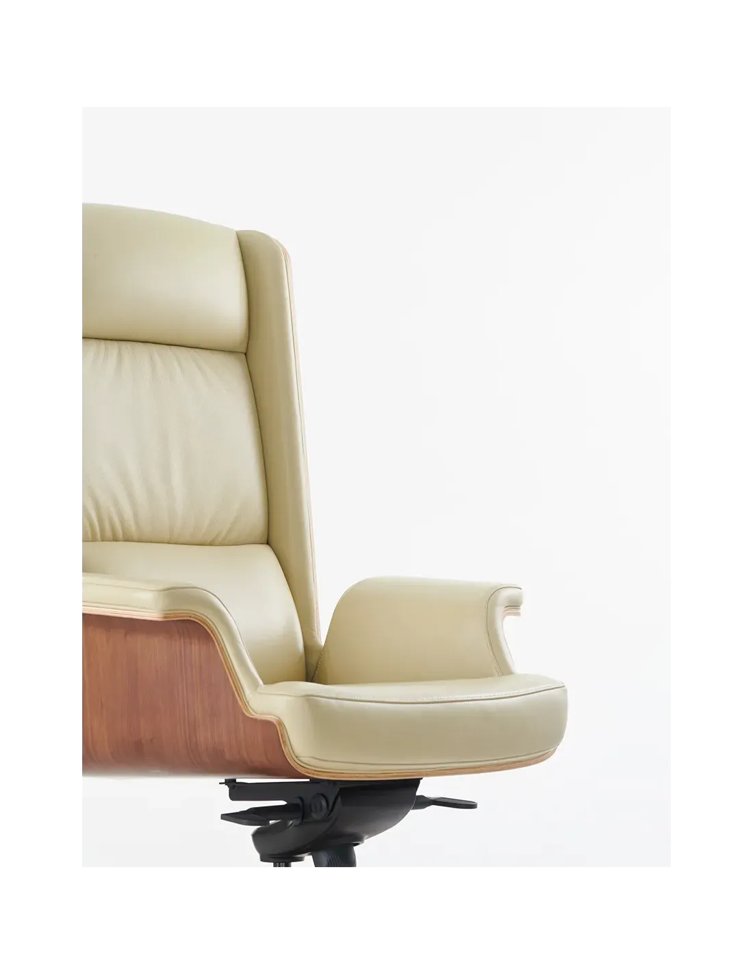 Країна: Китай. Клас: крісло керівника преміум-класу. Завдяки своєму ефектному дизайну та ретельно відібраним високоякісним матеріалам, крісло відразу ж привертає до себе увагу. Це ідеальний вибір для кабінету директора чи керівника, що допомагає підкреслити статус та манери лідера. Поєднання м'якої шкіри та теплого дерева не тільки створює тонкий контраст матеріалів, а й допомагає кріслу гармоніювати зі столом. Основа: метал, покритий деревом. Оббивка: натуральна шкіра, колір бежевий. Механізм: синхронний. Регулювання: висота посадки, фіксація спинки, жорсткість пружини качання. Підлокітники: нерегульовані. Максимальне навантаження: 120 кг. Гарантія: 3 роки.