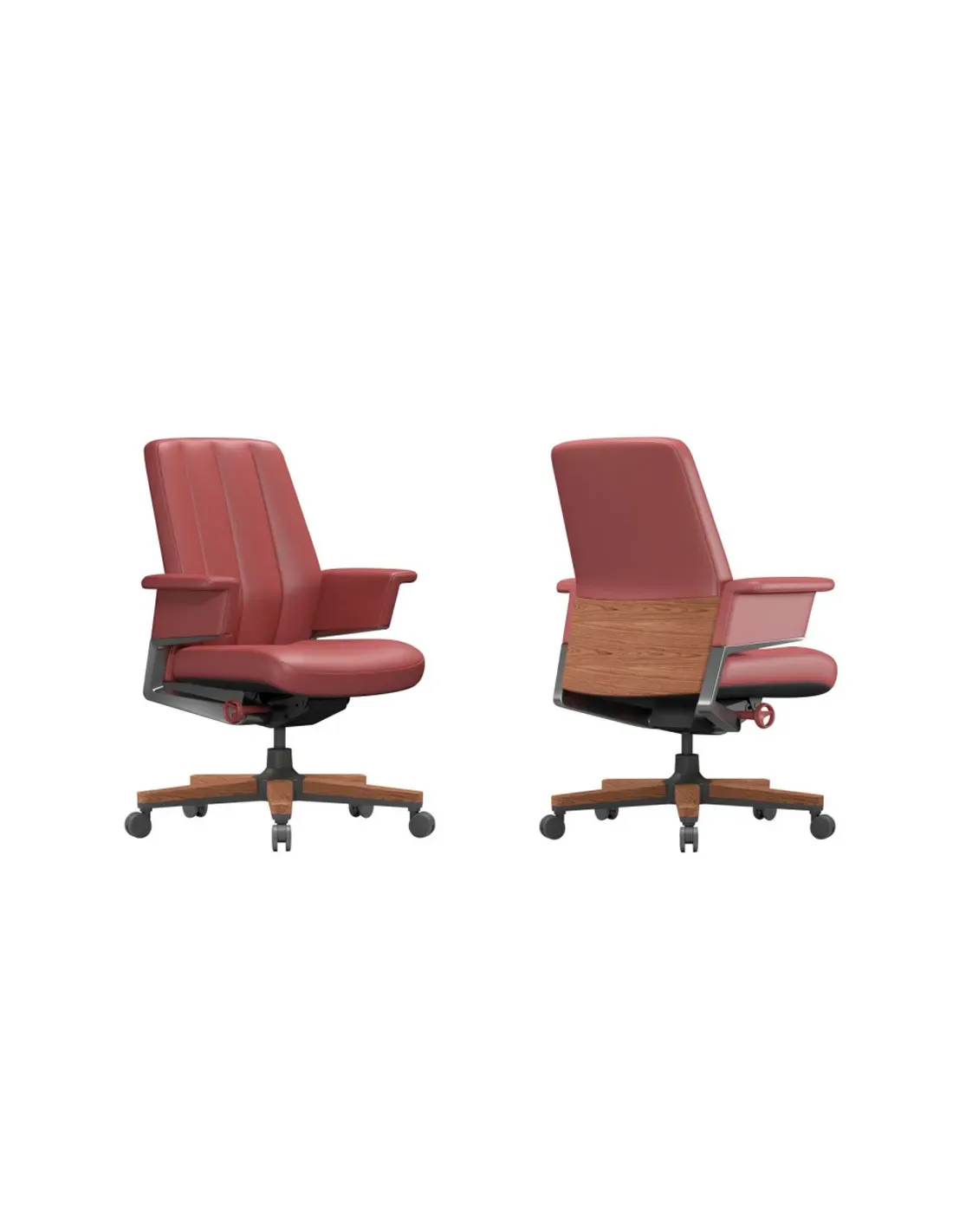 Країна: Китай. Клас: крісло відвідувача преміум-класу. Класично елегантне крісло з відтінком розкоші, що ідеально підходить для преміальних конференц-залів та кабінетів керівників. Воно випромінює відчуття високої якості та ідеально підходить для просування престижних проектів. Основа: метал, покритий деревом. Оббивка: натуральна шкіра, колір - бордовий. Механізм: синхронний. Регулювання: висота посадки, фіксація спинки, жорсткість пружини качання, глибина сидіння. Підлокітники: нерегульовані. Максимальне навантаження: 120 кг. Гарантія: 3 роки.